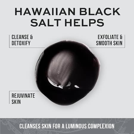 - Riche en minéraux : Le sel noir hawaïen nourrit et rééquilibre la peau.