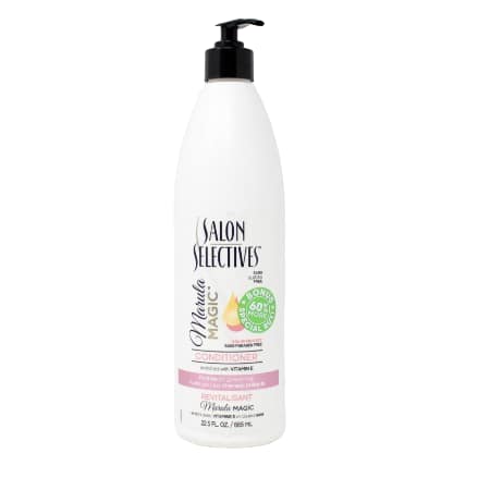 Conditionneur Salon Selectives à l’huile de marula, pour des cheveux secs et abîmés revitalisés, doux et brillants.